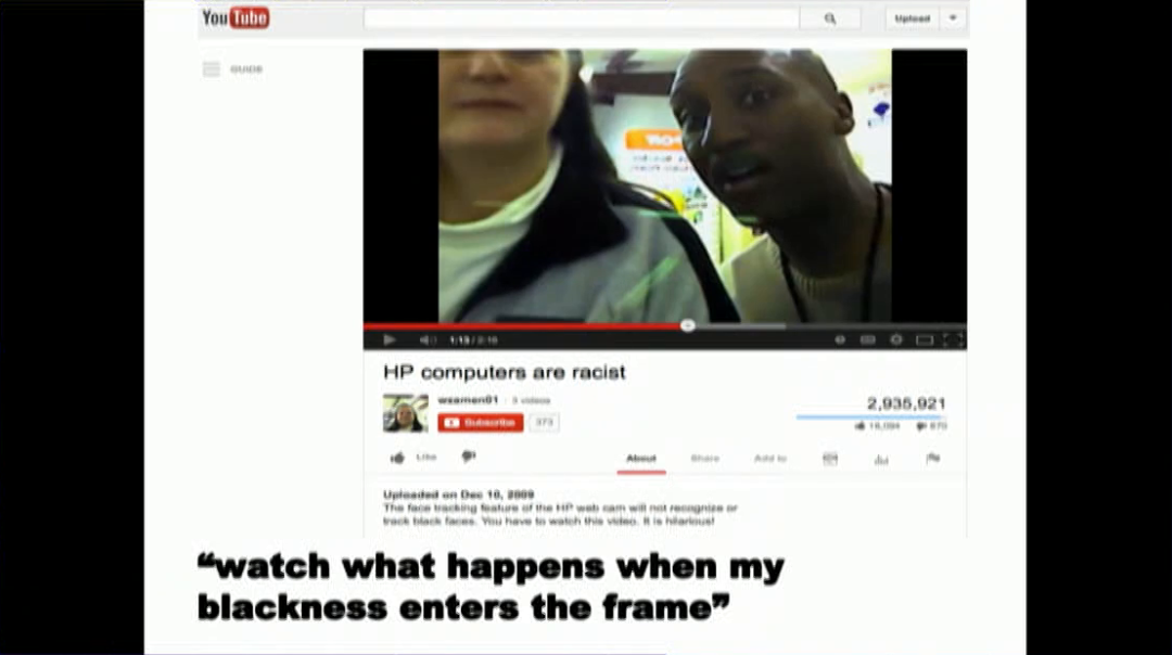2009 年,德克薩斯州,在一家露營商店工作的兩位工人,正在電腦上測試惠普新出的面部自動跟蹤系統,並用視頻記錄下了整個過程。