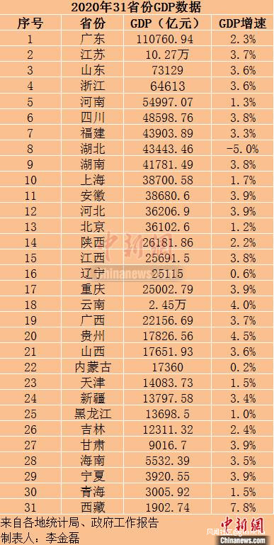 2020GDP:廣東江蘇山東前三湖北負增長 人均可支配收入:上海排首位_風聞