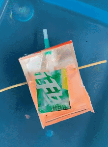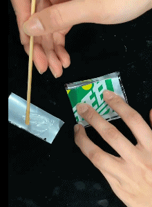 上述過程不斷重複,就可以看出鋁箔包不停收-縮-收-縮,發出噗噗的聲音。