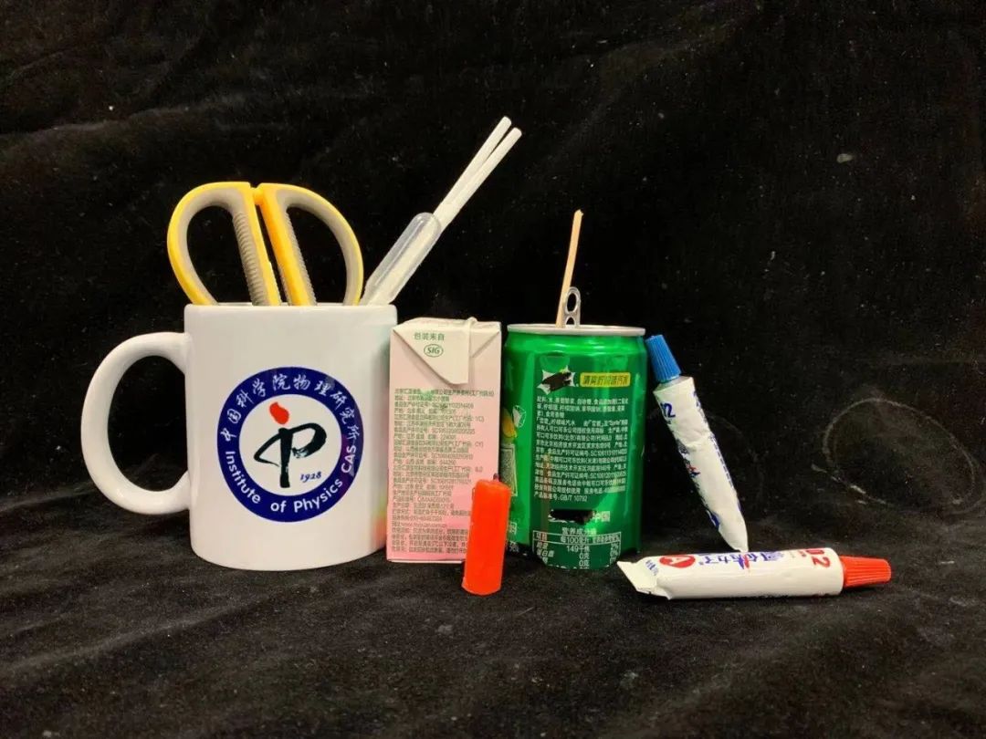 所標杯、剪刀、吸管、飲料盒、易拉罐、蠟燭