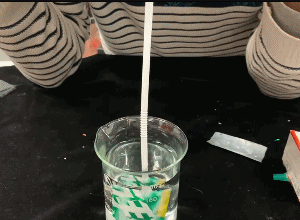 當氣體排除之後,冷水重新進入吸管,使得鋁箔包收縮。隨着燭火繼續加熱,氣體再度膨脹,又將水擠出來。