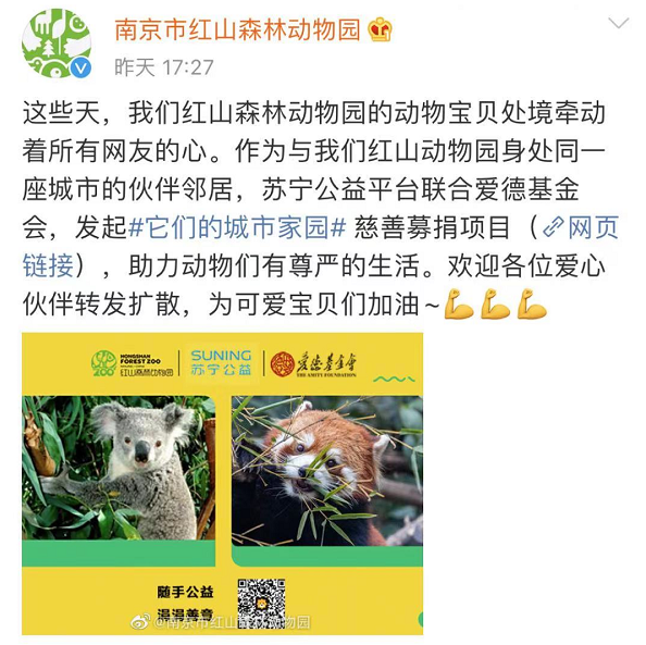 隨後,不少市民和網友用各種行動表達了對紅山森林動物園的支持:逛動物園、認養等等,工作人員27日稱,僅一天的時間就接到了300多個愛心認養電話。