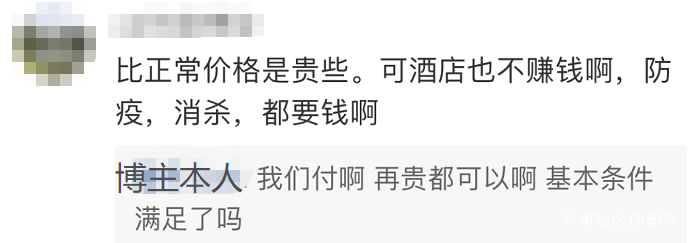 該網友質疑,並不是想免費,他們可以自費,但是基本的生活條件應該得到滿足,這種環境和條件下收費達到310元每天(含餐費),到底是為什麼?真的符合醫學隔離標準嗎?