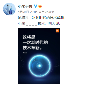 事情的起因是昨天晚上,小米在官博上面發了一個預告,暗示一款 “ 劃時代 ” 的技術即將發佈。