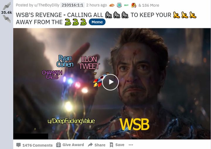 以此為契機,Reddit論壇上一個名為“wallstreetbets”(WSB)的小組,吹響了反攻華爾街巨鱷們的號角。