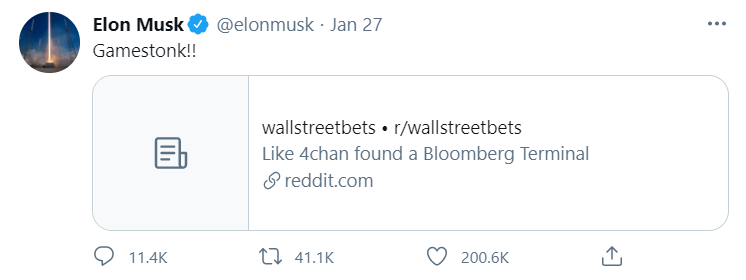 這一壯舉使得Reddit論壇和GameSpot受到了國際巨星級別的關注,遊戲圈聞風聳動,投資界嘖嘖稱奇,媒體報道層出不窮……就連埃隆·馬斯克也為之喝彩,在個人推特上應援GameStop。