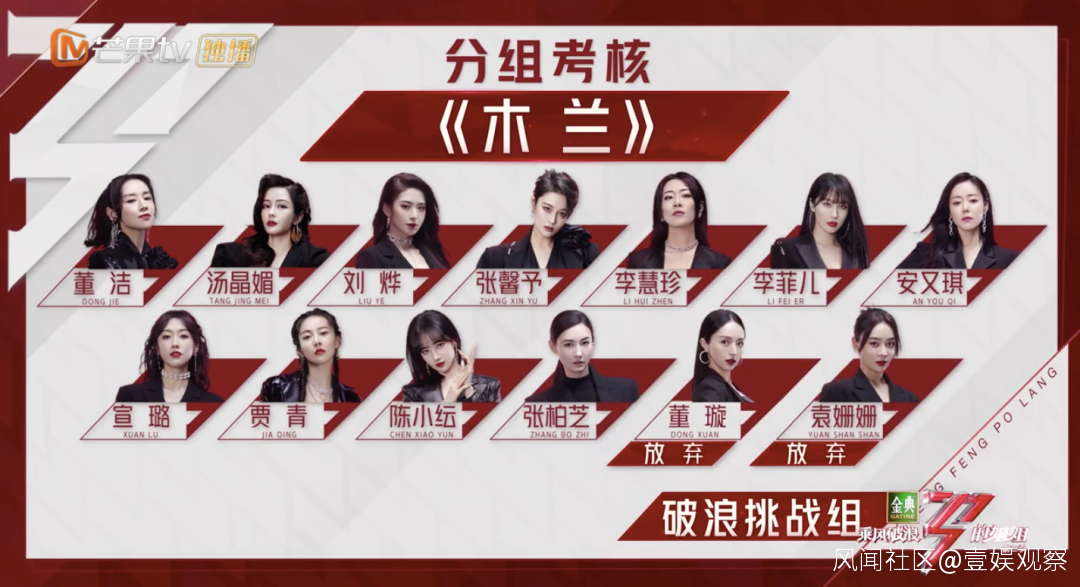 因為“破浪組”的姐姐們要“競爭上崗”,才能贏得自己心儀曲目的表演資格。“破浪組”將會被分為三個五人組,為了讓挑戰組能夠組成最優組合,(也為了給姐姐們增加挑戰難度),破浪組的成員可以學習不止一首歌曲。而三首曲目一公佈,大家就準確辨識出了最有“逆風翻盤”潛質的歌曲《Mulan》。