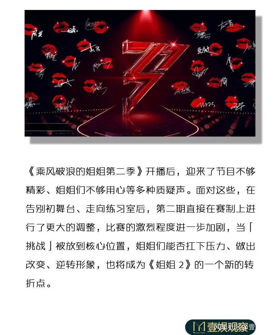 但是,當三十個姐姐順利就位,雖然節目模式的新鮮感無法再塑,但節目組還是在賽制規則上進行了一輪更為嚴苛的升級,而這份挑戰就直接擺到了姐姐們面前,她們能否扛下壓力、做出改變、逆轉形象,也將成為《姐姐2》的一個新的轉折點。面對節目不夠精彩、姐姐們不夠認真等質疑聲,《姐姐2》能否逆境破浪,那就要看節目組和姐姐們在這個轉折點上要釋放的“野心”有多強。