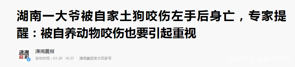 湖南一大爺被自家土狗咬傷左手後身亡_風聞