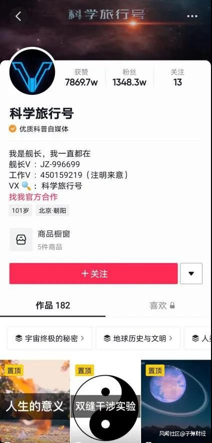 2018年入駐抖音的國家航天局專門天文知識科普賬號“航小天”,曾帶起一波航天科普熱的高潮。而就在那個時間段入駐抖音的優質科普自媒體“科學旅行號”,兩年多來發布了182個作品,獲贊近8000萬,粉絲超過1300萬。