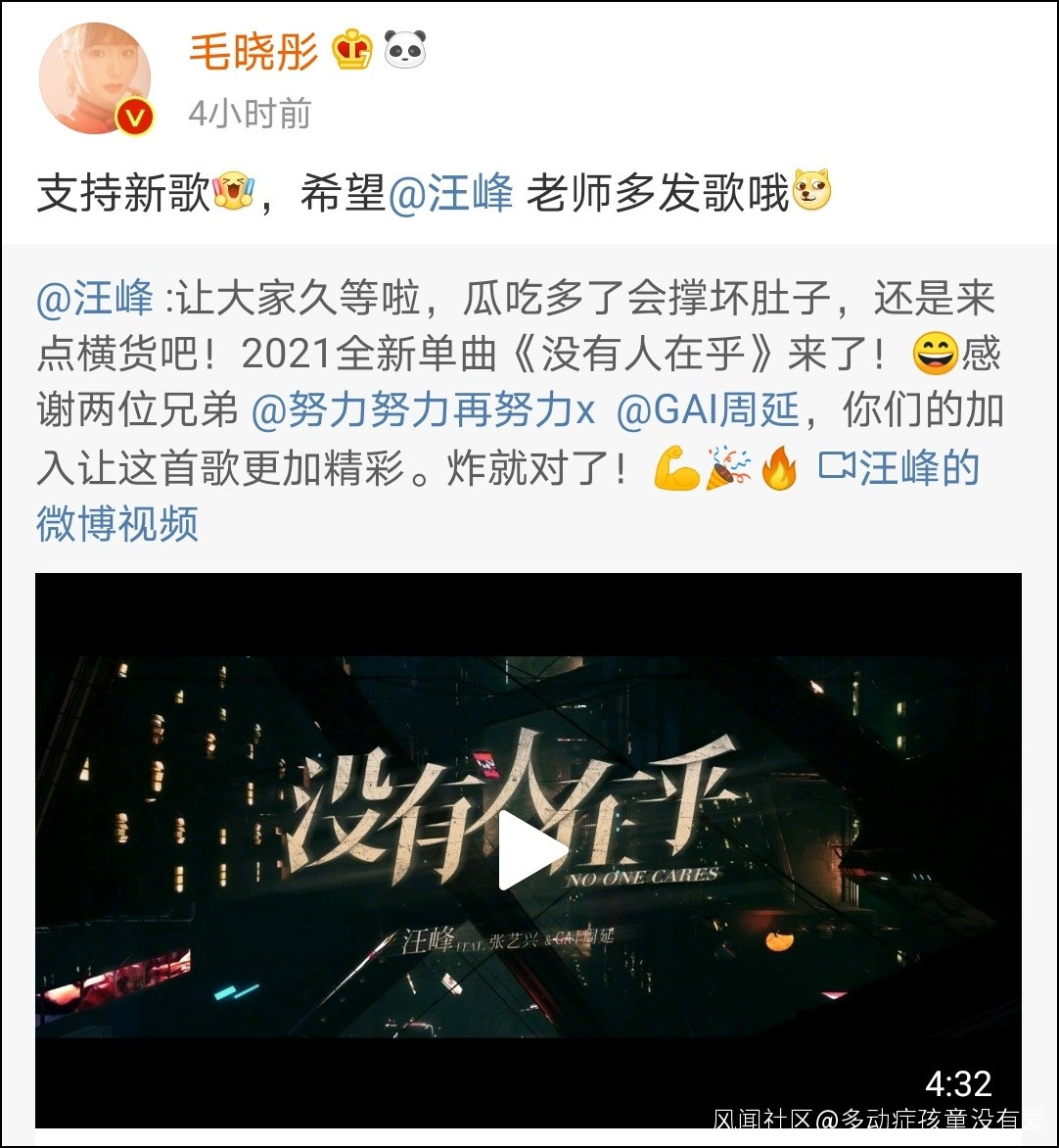 眾瓜退下,汪峯的新歌來了,歌名就叫《沒有人在乎》_風聞