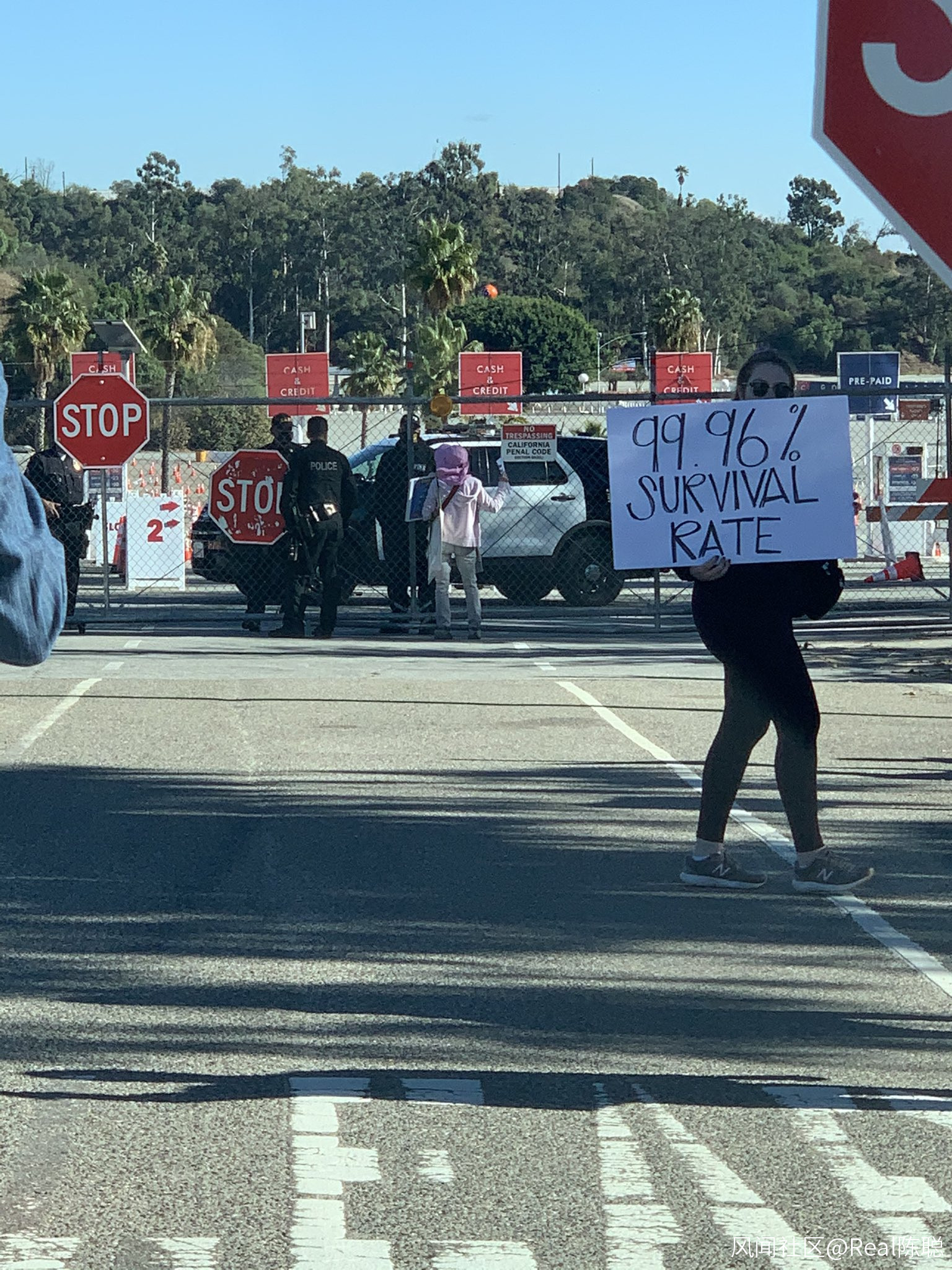 因為反疫苗人士現身干擾,洛杉磯警方緊急出動警力到場維持秩序。根據洛杉磯警方的官方消息,整場抗議示威是“和平”的,沒有任何的暴力衝突發生。