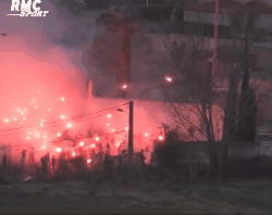 據悉,下午14時30分左右抵達la Commanderie訓練中心後,不滿的球迷們點燃了煙霧彈和鞭炮,並燒燬了周邊的三棵樹。