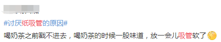 由於用紙吸管喝奶茶的體驗實在太糟糕,不少網友哀嘆道:紙吸管讓我成功戒掉了奶茶。