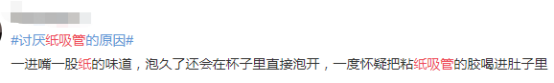 還有人抱怨紙吸管遇水就變軟,還沒喝多久奶茶就嚐到了紙的味道:
