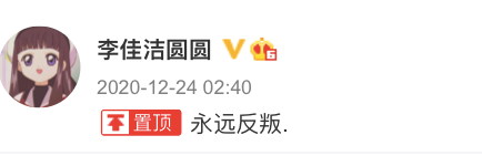 李佳潔的微博置頂是這樣四個字:永遠反叛。