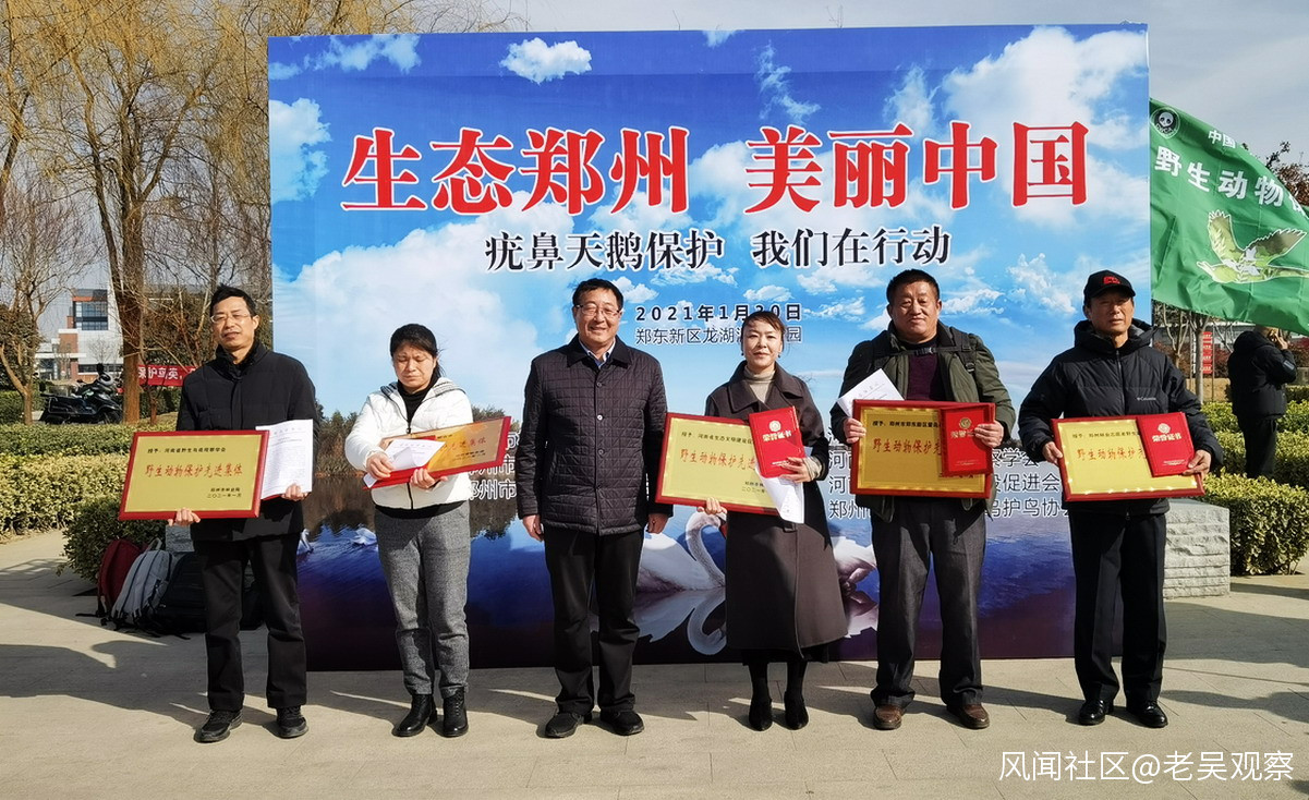 動員會上,河南省環保聯合會、河南省野生鳥類觀察學會、河南省生態文明建設促進會,分別對鄭州林業志願者野生動物保護隊等5家先進集體,以及丁新玉、萇虹、周強、董朝偉、谷建軍、邊建中、吳賢德等47名保護疣鼻天鵝志願者先進個人頒發“榮譽證書”吳賢德攝影