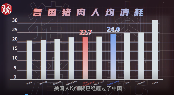 儘管證據顯示,即便是在主戰場豬肉消耗領域,美國人均消耗已經超過中國。
