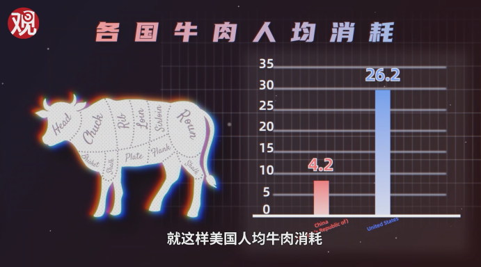 温室氣體排放是豬肉6倍的牛肉,美國人的消耗,是中國的6倍不止。