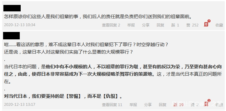 如果在國家公祭日的帖子下,都是一些勸不要轉嫁仇恨給今天的日本人的口號,那才是真的幫日本右翼煽風點火。抗日戰爭結束才76年,日本政府既沒有正式糾正歷史教科書中的錯誤,也沒有對甲級戰犯和乙級戰犯進入靖國神社合祭給東亞各國一個合理的交代。