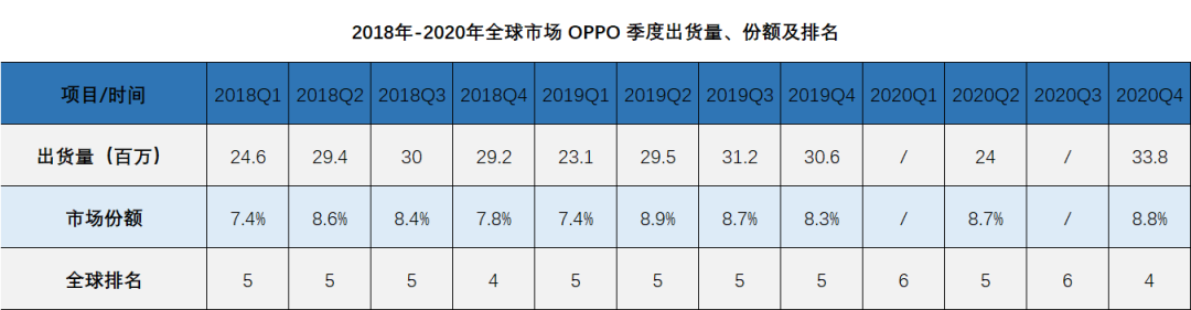 “戰術迴歸”果然沒讓OPPO失望,IDC報告顯示,2020年第四季度,OPPO以10.7%的同比增長再次回到全球第四的位置。