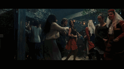 她帶着男人來到主人的房間,看到很多人正在參加一場盛宴。