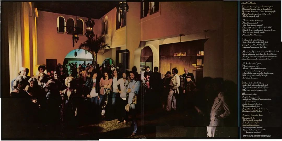 就在經過走廊時,男人聽到走廊兩旁房間裏的客人們竊竊私語,聲音堆疊在一起,他彷彿聽到他們在對他説:“歡迎來到加州旅館,這是一個美麗的地方,這裏有很多可愛的面孔,這裏永遠有空房間,你在任何時候都可以來到這裏!”