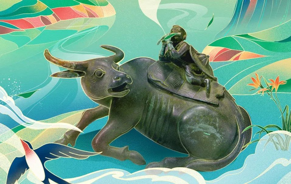 隨後我發現明代的牧童騎牛形銅燻爐,記錄下了牧童騎着水牛,悠然吹着短笛的風騷瞬間。