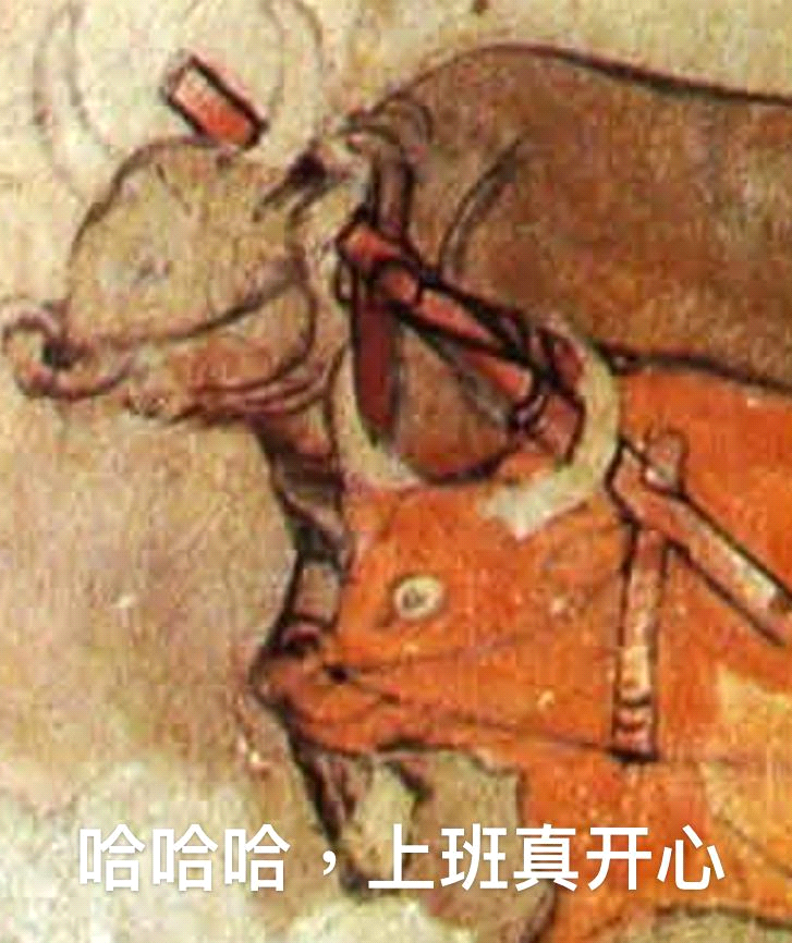壁畫裏大部分的耕牛都面露笑容,可見在當時,牛都不需要996: