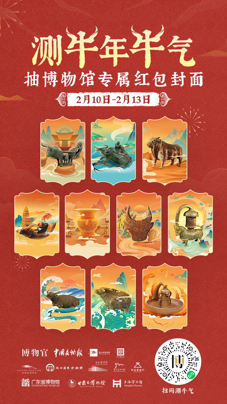 測完牛氣後,你還可以獲取抽獎機會,抽取各博物館定製紅包封面和牛文物專題壁紙。