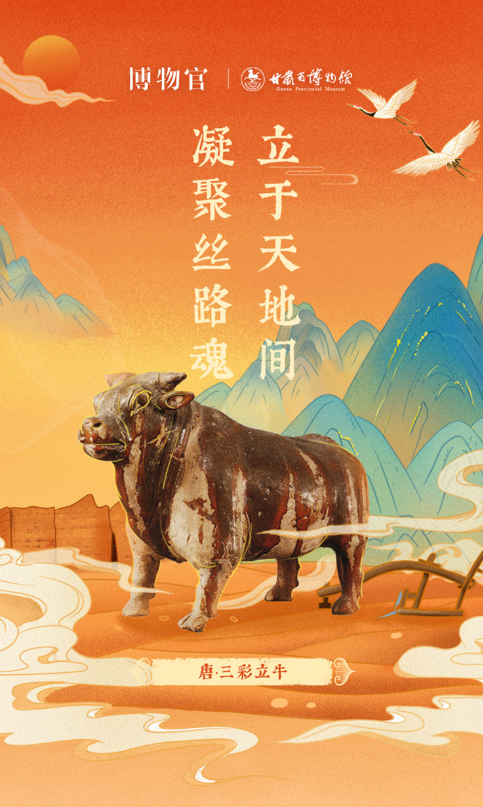 再比如“立於天地間,凝聚絲路魂”的唐三彩立牛。