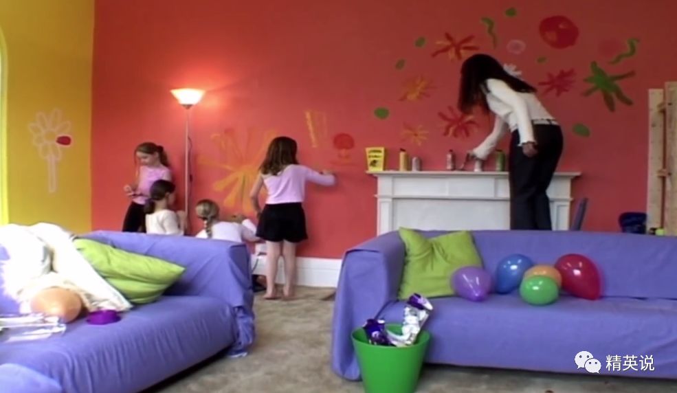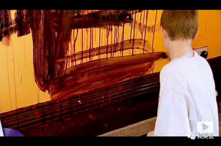 屋內,率先發現畫筆的男孩開始了塗鴉,好好的牆壁,瞬間被抹得慘不忍睹。