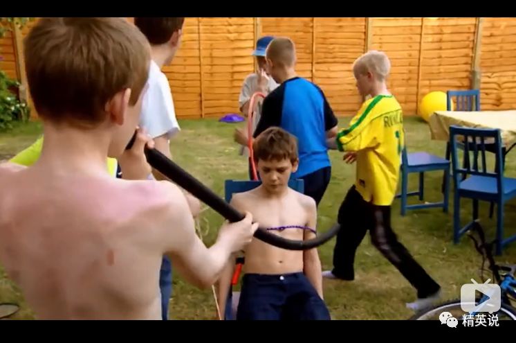 **隨着破壞的深入,一開始就飽受詬病的男孩邁克爾成了新的攻擊對象。**男孩們下意識地認為,他是所有人當中最調皮搗蛋的那個,於是他們把邁克爾綁在了花園裏,作勢要拿水管抽他,邁克爾卻傻乎乎地樂呵着。