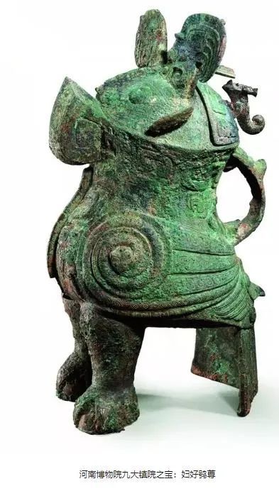 左3的婦好鴞尊,產於商代晚期,亦位居河南博物院九大鎮院之寶之列。