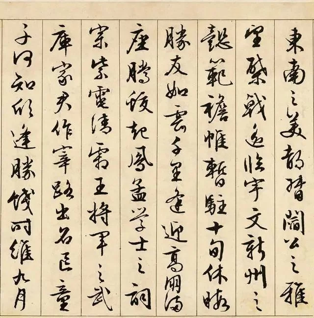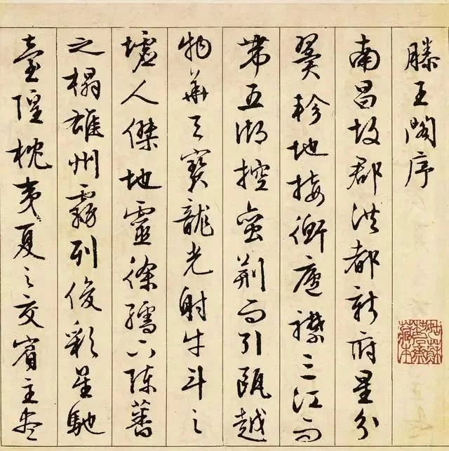 文徵明的行書温潤秀勁,法度謹嚴而意態生動,雖無雄渾的氣勢,卻具晉唐書法的風致,以他的代表作《滕王閣序》為例,有一種流暢秀麗、靜穆閒雅、柔美妍妙的氣象,滿篇書卷氣,自有文人的清高和瀟灑!《滕王閣序》是文徵明代表作之一,有些國展評委評價為:該作並沒有超出前人的侷限,算不上精品!