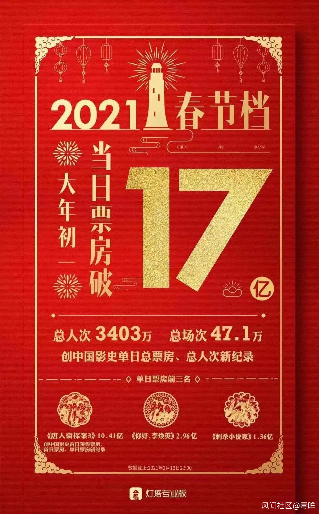 漂亮的預售成績、《唐探3》前期積累的票房和高票價等因素綜合起來,成為昨日17億票房收官的最核心要素。接下來春節檔的最大變量,在於能否像往年出現票房黑馬,在口碑的引導下持續加熱大盤。