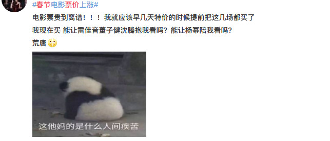 “2019年春節的時候電影票已經很貴了,沒想到今年更貴,但已經習慣大年初一去看電影了,就只能接受這件事。”一位昨日去影院連看了五場電影的影迷對毒眸説道。