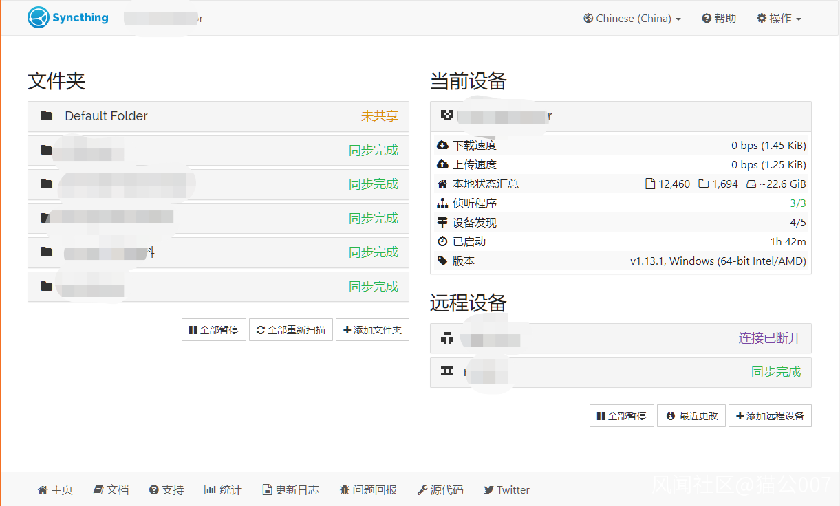 大約是XigmaNAS 11之後的某個版本,免費開源的Syncthing開始成為內置的功能。這個文件/文件夾同步軟件非常強大,支持IPv4和IPv6,不需要做任何網絡配置即可實現局域網穿透,數據傳輸基於TLS加密安全可靠。NAS、電腦、手機相互之間都可以同步,支持文件版本控制,可以保留文件的多個歷史版本,簡直好用到爆。就算不用NAS,用於幾台電腦間的文件同步,或者手機相冊之類和電腦之間的同步也非常棒。以一個很常見的場景為例,在辦公室用筆記本,回家用台式機,設置好同一個工作文件夾和NAS自動同步。在辦公室用筆記本時,對這個文件夾裏面的所有改動,都會自動同步到家裏的NAS。回到家打開台式機,工作文件夾的這些改動又會從NAS自動同步到台式機。反之在台式機的改動也通過一樣的機制會自動同步到NAS和筆記本,U盤、移動硬盤什麼的根本不需要。