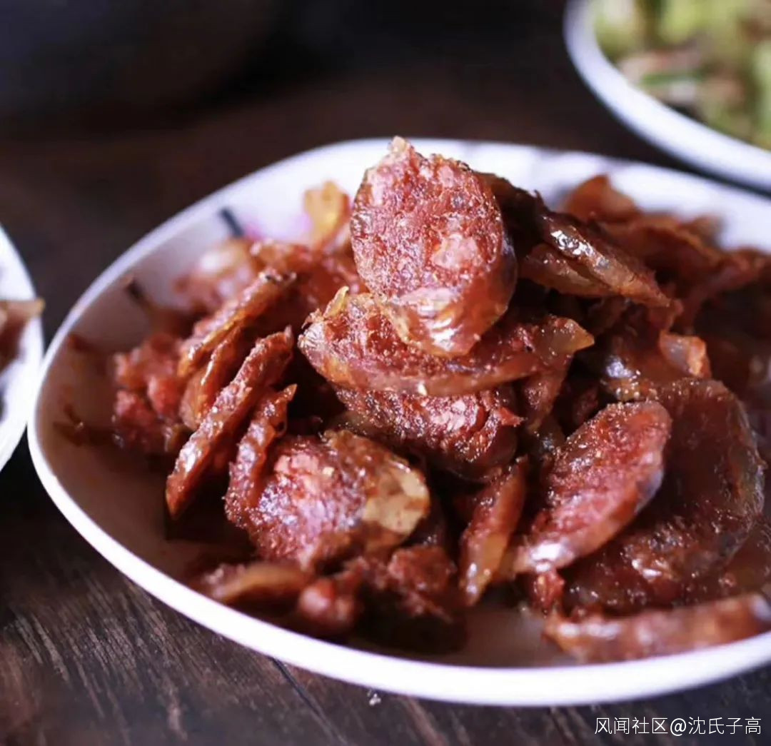 臘腸也在北魏《齊民要術》中初見記載:“灌腸法”,如今也一直流傳。做法就將肉類絞碎成泥狀,灌入動物腸衣中。貴州人制作的臘腸,味道鮮美有嚼勁,種類也豐富,有廣式甜味臘腸,還有椒鹽味臘腸。