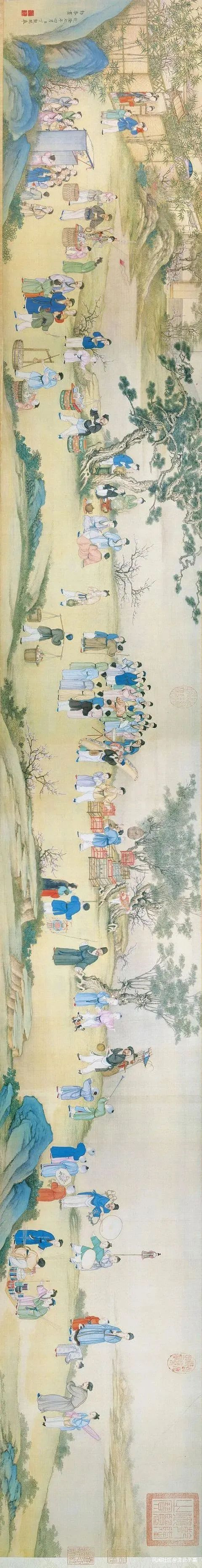 清 丁觀鵬《太平春市圖卷》,下圖請把手機橫過來欣賞: