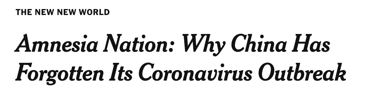 《健忘國:中國為何已然忘卻其疫情》(5月27日)