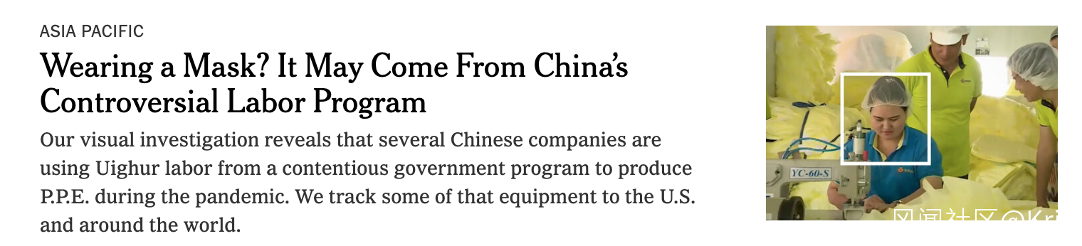《還戴口罩嗎?它可能來自中國飽受爭議的勞動計劃》(7月19日)