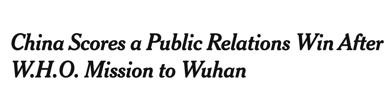 《世衞武漢考察後,中國取得公關勝利》(2月9日)