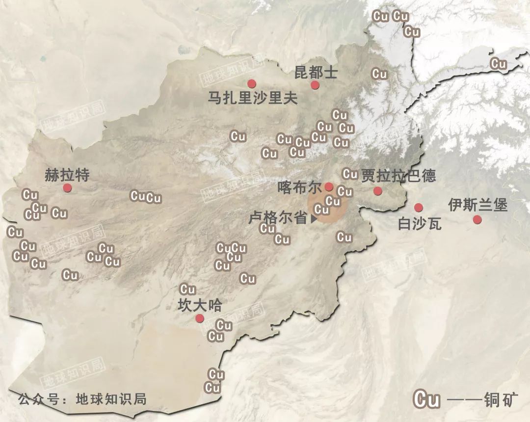 至於銅礦,更是全國各地均有發現。比如從首都所在的喀布爾省延伸到盧格爾省的銅礦帶,是世界上最大的銅礦帶之一。該銅礦帶綿延110公里,估計礦石儲量達十億噸。