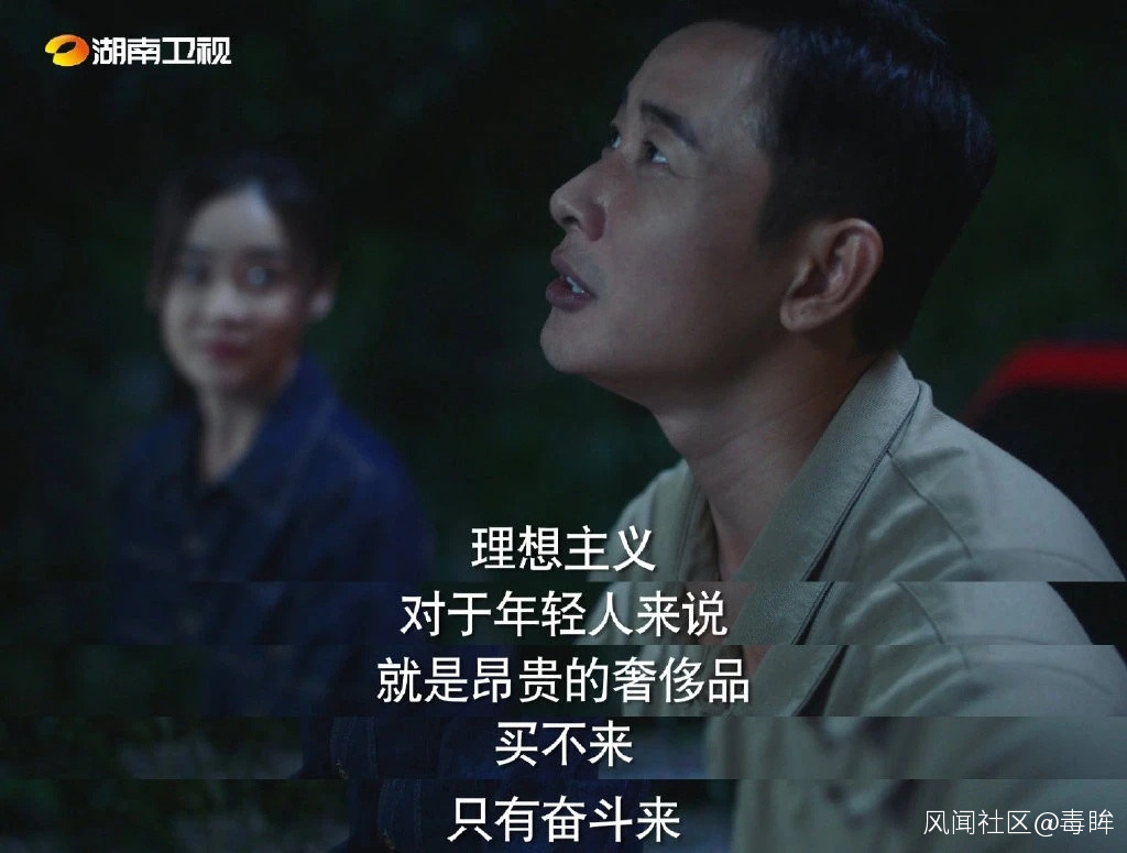 理想主義的光輝,也閃耀在這些“爽文”敍事中。正如《山海情》結尾所寫,“這是一幅盪漾理想主義浪漫,藴涵現實主義真切的畫作。”這兩部扶貧劇都在借主角破除萬難的堅持,讚美着扶貧幹部的理想主義。
