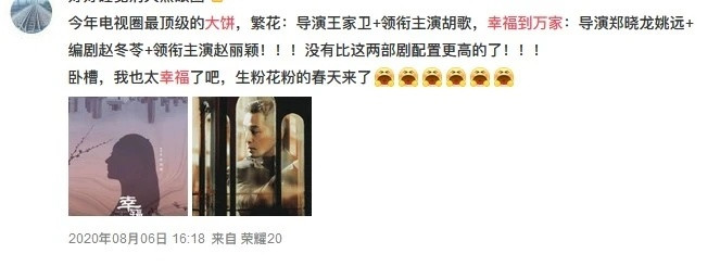 而在當下飯圈的語境中,也會把扶貧劇作為“大餅”,認為接演扶貧劇是對自己愛豆的認可。比如鄭曉龍導演的扶貧劇《幸福到萬家》官宣趙麗穎為女主時,就被許多人認為是“85花第一大餅”“轉型大青衣之作”。更多流量明星的加入,也能讓主旋律劇集在更早期就受到廣泛關注,有助於主旋律劇的破圈。