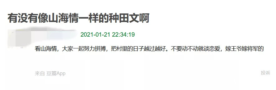 《山海情》《江山如此多嬌》在開年的走紅示範了一種可能性:種田文的模式,除了能讓觀眾有代入感,跟着角色一起成長,年輕人們還能在種田文敍事裏看到鄉野田間,返璞歸真的美,就像年輕人們關注李子柒、丁真所能收穫的一樣。