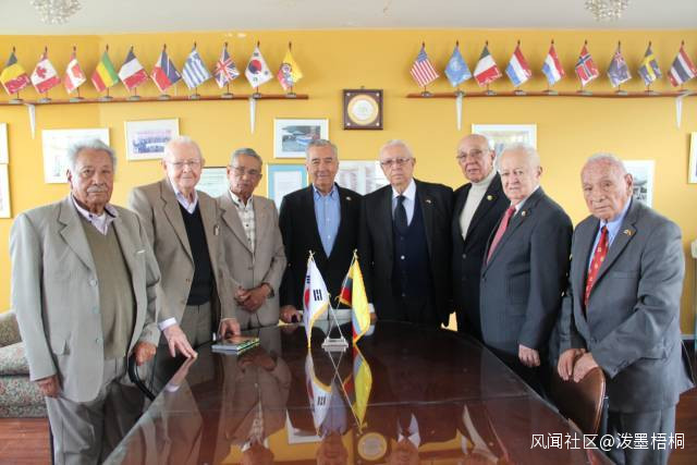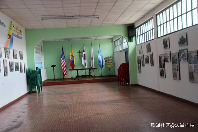 哥倫比亞韓戰老兵協會(編者注:朝鮮戰爭)坐落在首都波哥大的老城區內,是哥倫比亞國防部免費提供的一處院落。共有兩層樓加一個庭院,一樓一進門有一個很大的廳,正對面有四面旗幟,哥倫比亞國旗、韓國國旗、聯合國國旗,還有協會的會旗。牆上貼着參戰的照片,寫着哥韓友誼長存的條幅,上書“戰爭兄弟,和平兄弟”的口號。