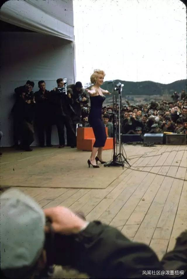 △1954年夢露受美國勞軍組織(U.S.O.)邀請去朝鮮半島慰問演出. 來源: Robert H. McKinley Collection/Marine Corps Archives and Special Collections