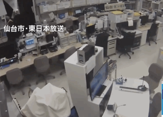 宮城縣仙台市“東日本放送”電視台辦公室劇烈搖晃。圖源:東日本放送